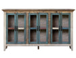 6 Glass Doors 73" Console. The Antique collection is meticulously crafted from solid pine wood, featuring a captivating hand-distressed look in a multicolor finish. This collection serves as the perfect rustic addition to your home.