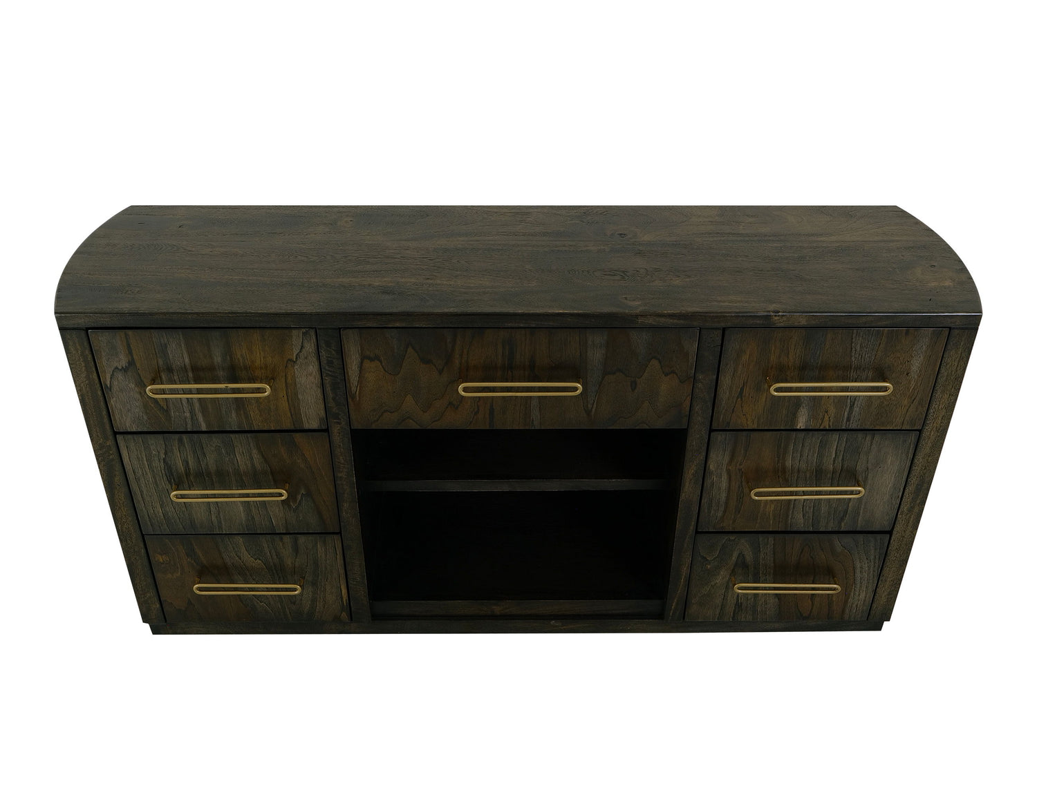 7 Drawer, Console. Our Balam collection is handcrafted from mango and teak wood. This simple yet stunning collection will bring an organic, modern touch to your space. The Black Balam consoles highlight the wood's unique grain and offer ample storage for your essentials, adding a stylish look to any room. They are ideal for bedrooms, living rooms, or any area that needs organized storage. The Balam collection not only improves your home but also highlights skilled craftsmanship. Transform your space with these practical and attractive pieces.