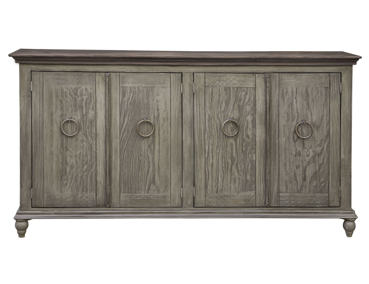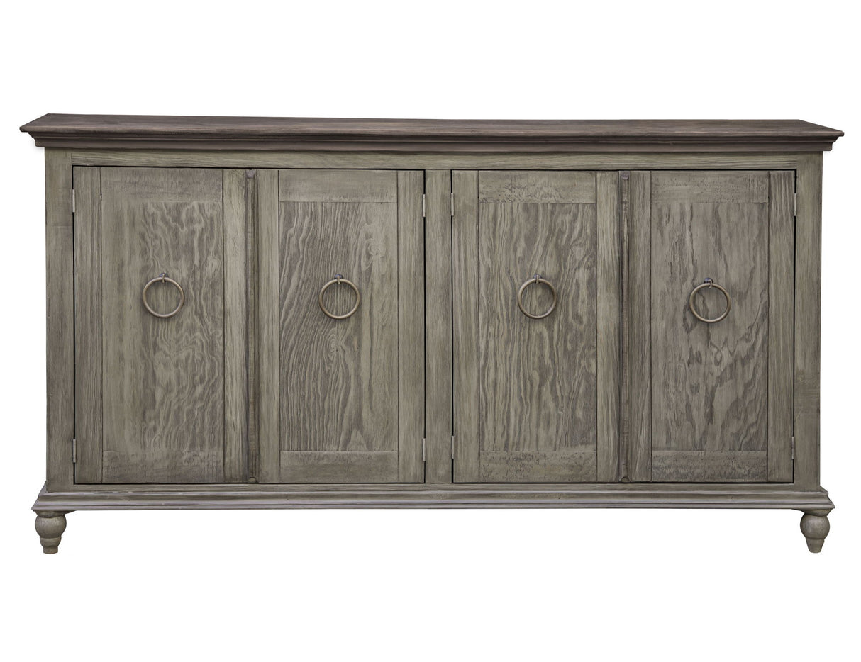 4 Door Console. The Capri console effortlessly introduces a rustic charm to your space. Inspired by the old world, its design features clean lines and hand-turned feet, culminating in a meticulous finish of hand-distressed wood.