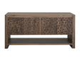 4 Door, Console. This exquisitely crafted console seamlessly blends artistic design and practical functionality. The skillfully carved doors add to its aesthetic appeal and provide a sense of sophistication that will impress. The clean-lined design is thoughtfully complemented by a discreet pull system, ensuring a seamless and elegant appearance. Additionally, the console offers generous open space, allowing you to elegantly display your favorite decorative pieces and further enhance the overall ambiance of your space.
