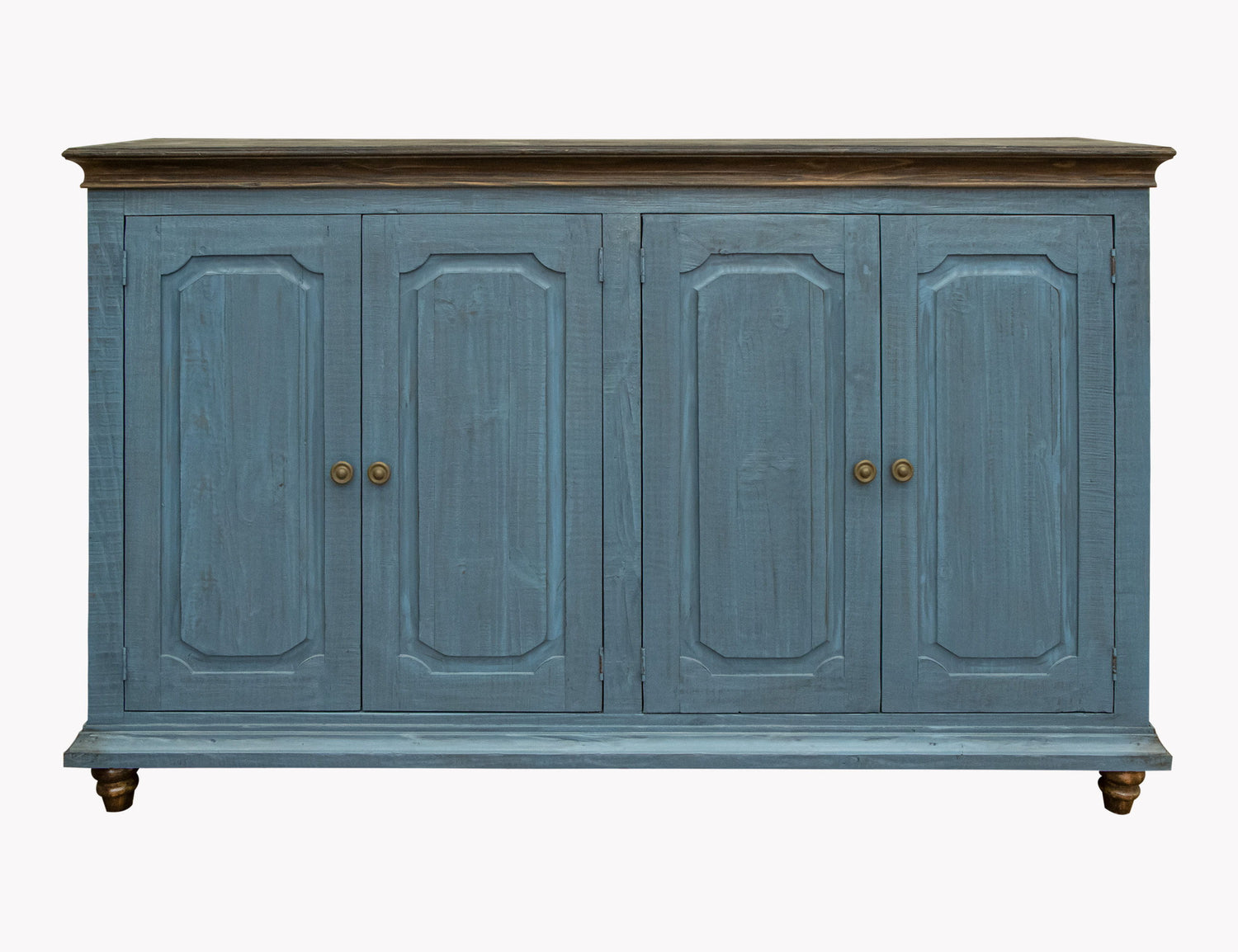4 Doors Console. Crafted from pine wood, the Margot console showcases a sleek, clean-lined design complemented by beautifully hand-turned bun feet. Offering a spectrum of shades, this console caters to diverse tastes and preferences, ensuring a perfect match for any space.