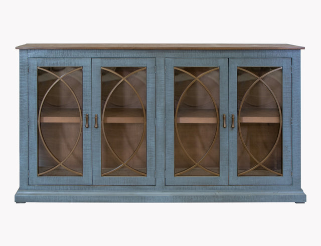 4 Door Console. Introducing the Marlin console, expertly crafted from solid pine wood. This accent console boasts a distinctive, clean-lined design, skillfully finished in a bold tone that elevates it to the status of a statement piece for your room.