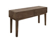 2 Drawer, Sofa Table. Our Olivia collection embodies traditional mid-century furniture shapes, crafted from solid wood with a unique texture. Artisans intricately carve curves into drawer fronts and doors, inspired by ocean waves and natural textures. This brings warmth and organic charm, perfect for modern and minimalist styles, blending seamlessly with mid-century, coastal, eclectic, and modern designs.