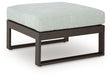 Sleek, contemporary style meets outdoor living in this ottoman. Its clean-lined black aluminum frame expertly balances good looks and longevity. And the enhanced UV resistance of Nuvella+™ fabric keeps the cushion light and bright, weathering the seasons beautifully. With this ottoman on the back porch or poolside, you can confidently curate a luxe vibe.