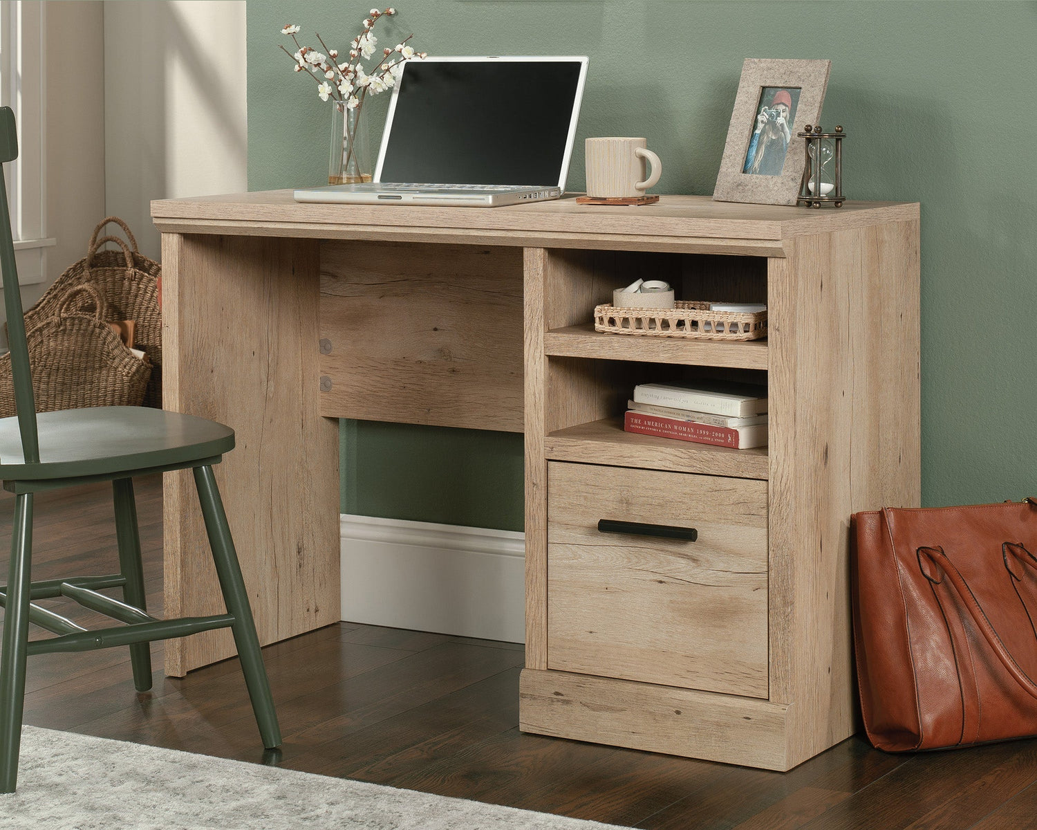 Aspen Post Single Pedestal Desk in Prime Oak – Home Office Desk with File Drawer & Adjustable Shelf