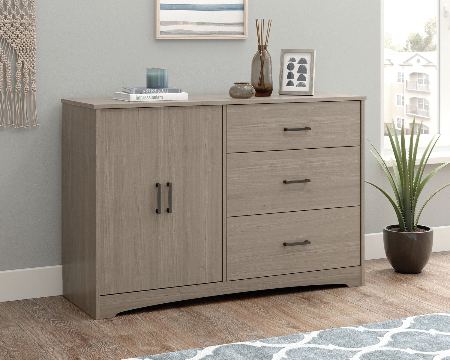 Beginnings 3-Drawer Dresser in Silver Sycamore – Bedroom Dresser with Doors and Adjustable Shelf