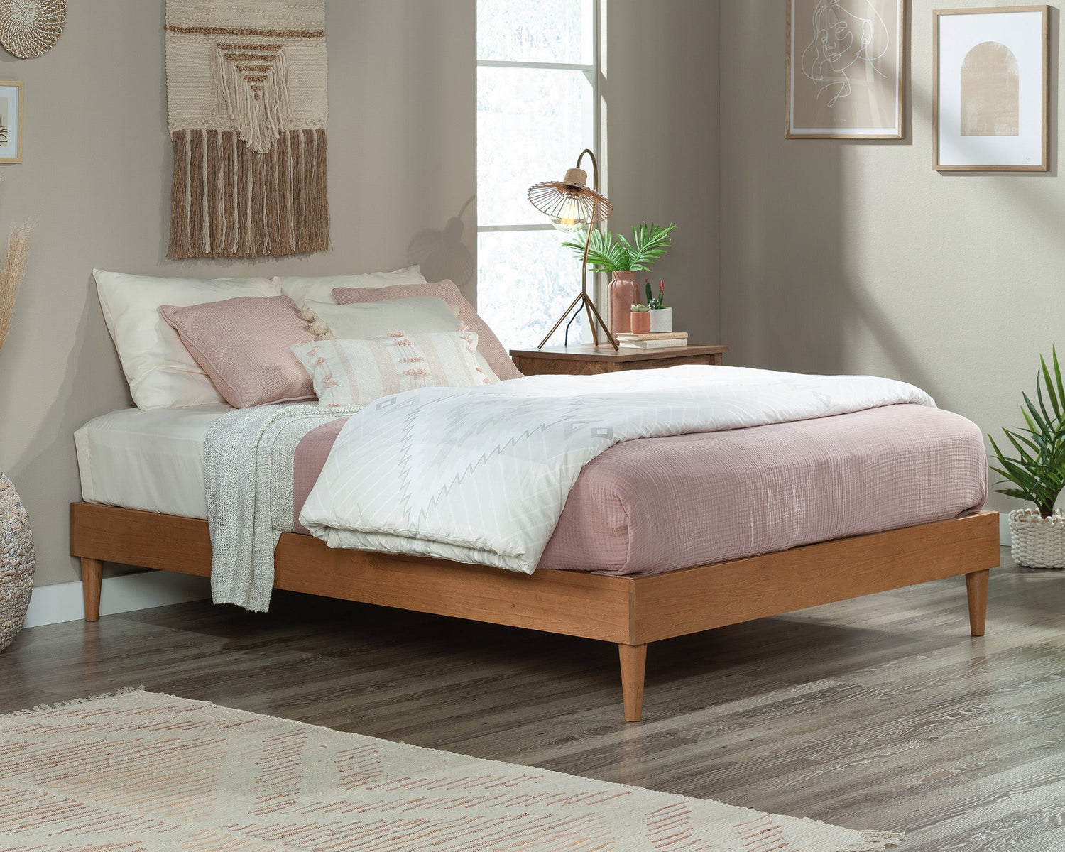 Cannery Bridge Queen Platform Bed with Tapered Rounded Legs in Exotic Woodgrain – Modern Queen Bed Frame, No Box Spring Needed
