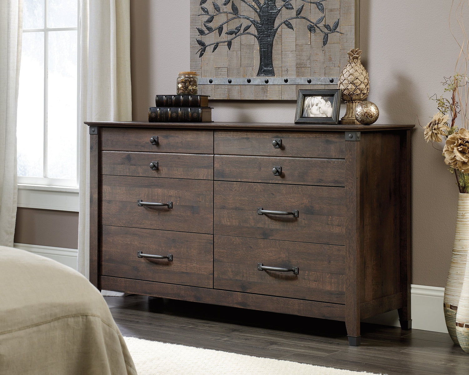 Carson Forge 6-Drawer Dresser in Coffee Oak – Rustic Bedroom Storage Chest with Smooth Metal Runners & Wrought Iron Hardware