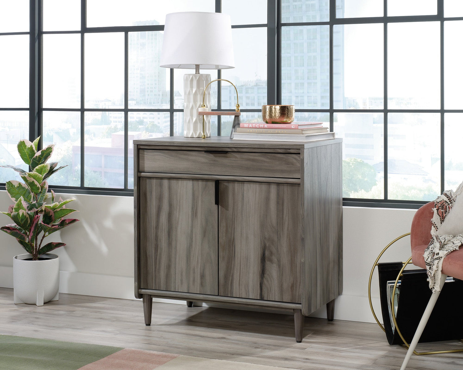 This library base cabinet provides versatile storage with a large hidden compartment behind its two doors and a smooth-gliding storage drawer. Perfect for storing pens, chargers, sticky notes, books, binders, or even a printer, this cabinet keeps your home office or living space organized. Its thoughtful design ensures everything has its place and remains easily accessible while maintaining a clean and stylish aesthetic.