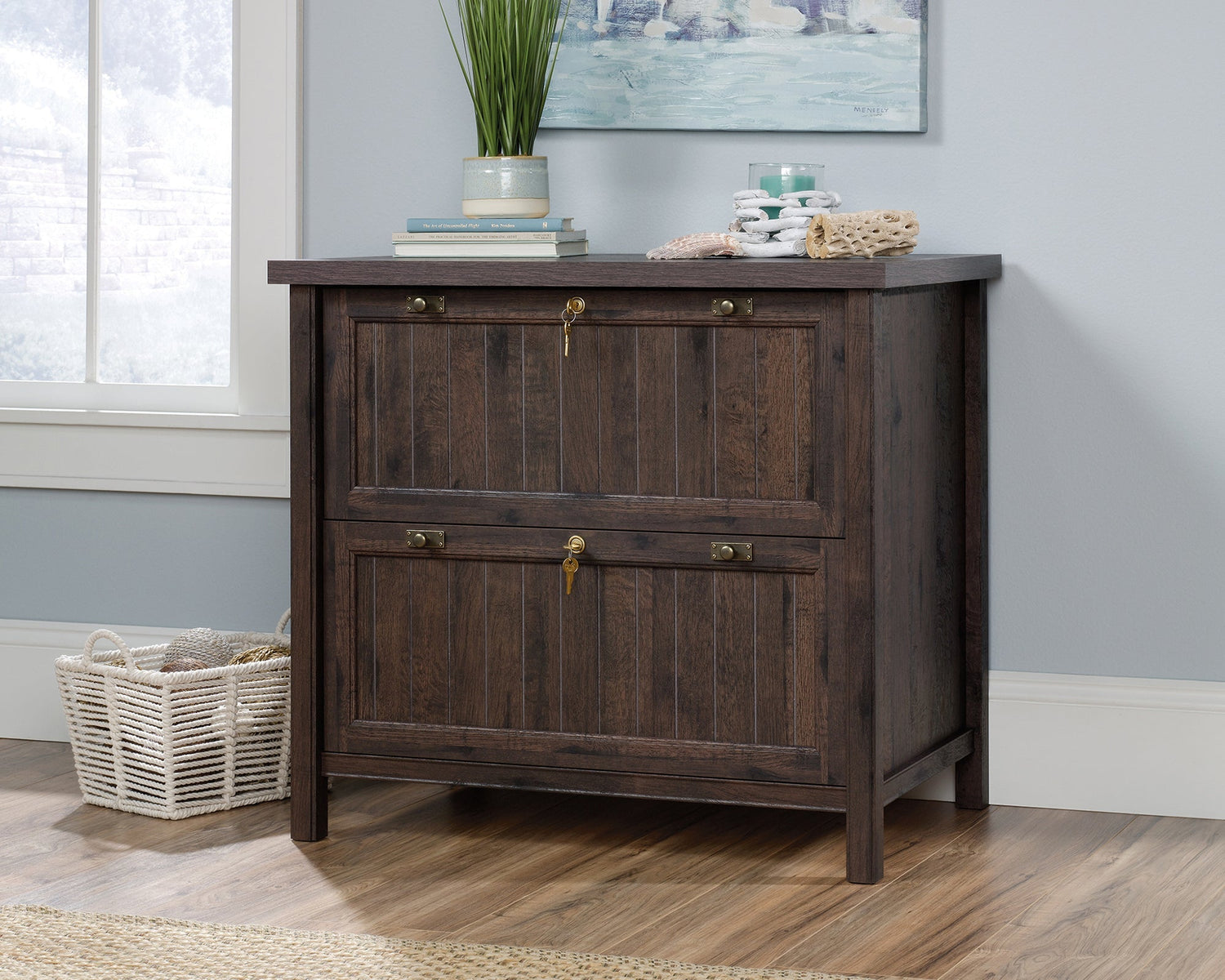 Costa Lateral File Cabinet in Coffee Oak – 2-Drawer Storage with Locking Mechanism, Letter/Legal File Storage, Slat-Front Doors & Cottage Style