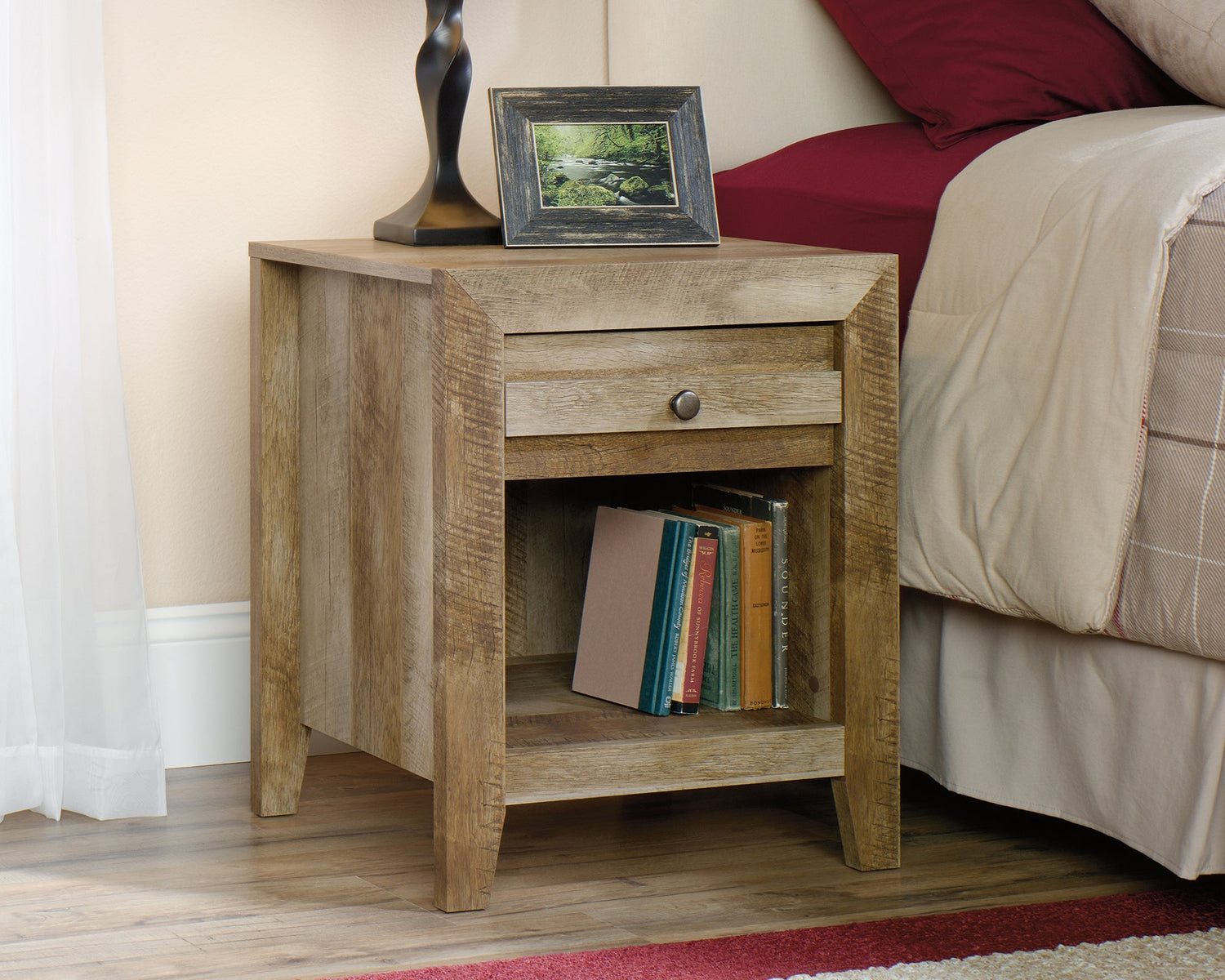 Finished in Craftsman Oak, this versatile nightstand combines style and functionality. With a drawer for concealed storage and an open shelf for display, it serves as both a practical and decorative addition to your bedroom.