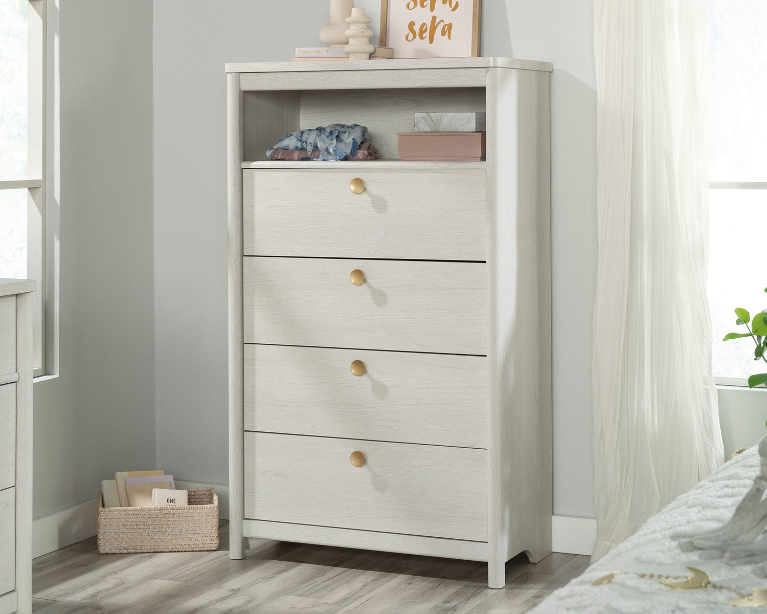 Dover Edge 4-Drawer Chest GO A2 in Glacier Oak – Bedroom Dresser with Smooth-Glide Drawers & Open Shelf Storage