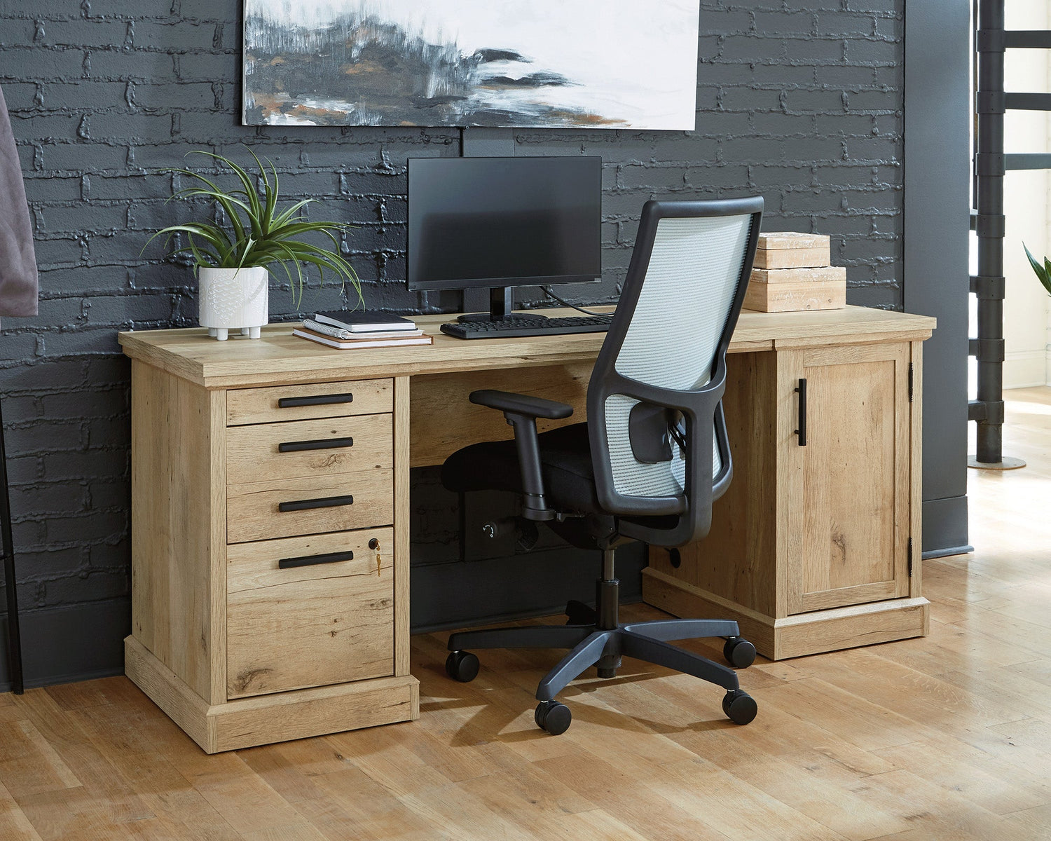 Mason Peak 72" Knee Space Credenza in Prime Oak – Office Credenza with Storage Drawers, File Space & Cord Management is backordered and will ship as soon as it is back in stock.