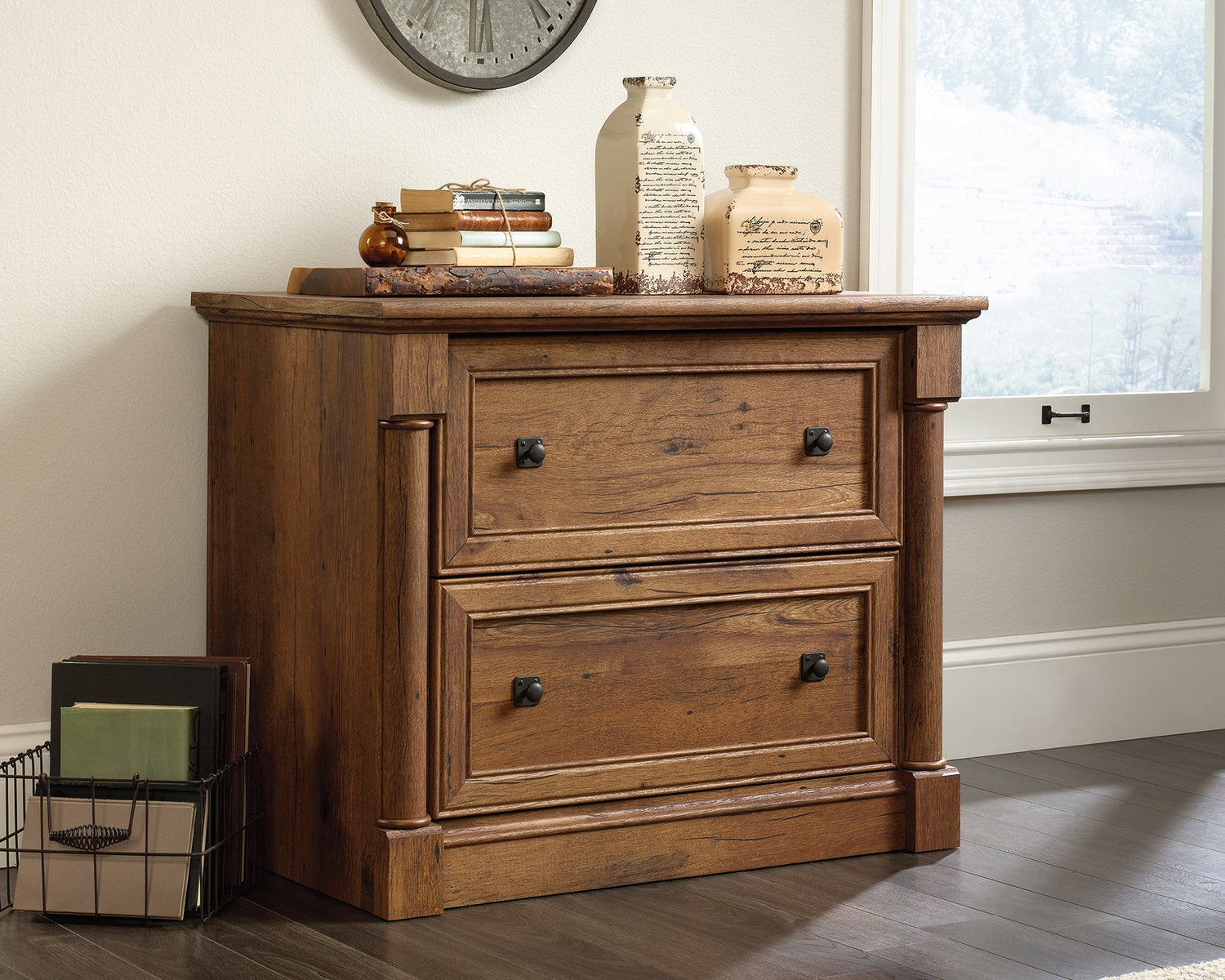 Palladia Lateral File Cabinet in Vintage Oak – Two-Drawer File with Full Extension Slides, Safety Lock & Spacious Top for Office or Home