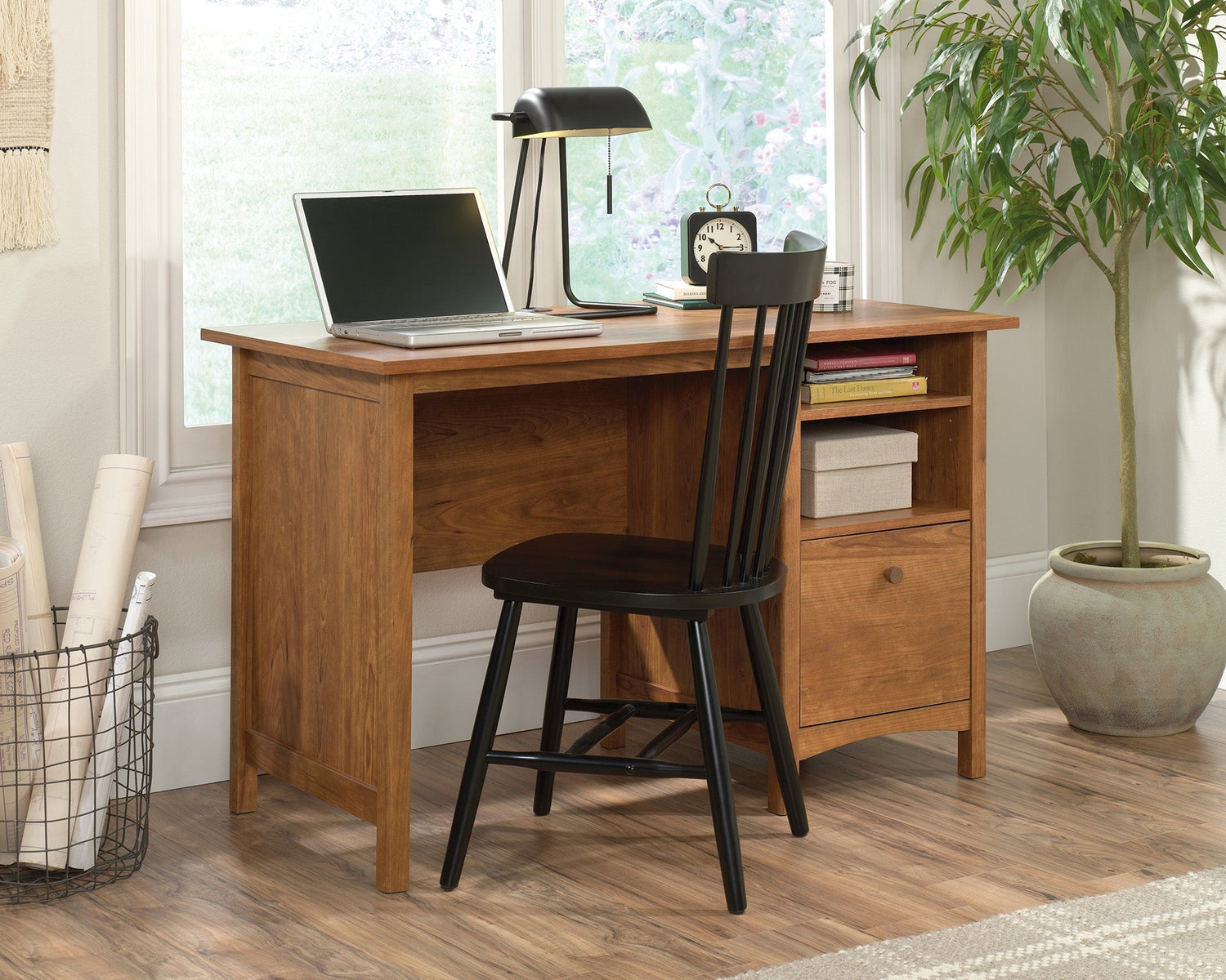Union Plain Single Pedestal Desk in Prairie Cherry – Home Office Desk with Filing Drawer, Open Storage, and Cord Management