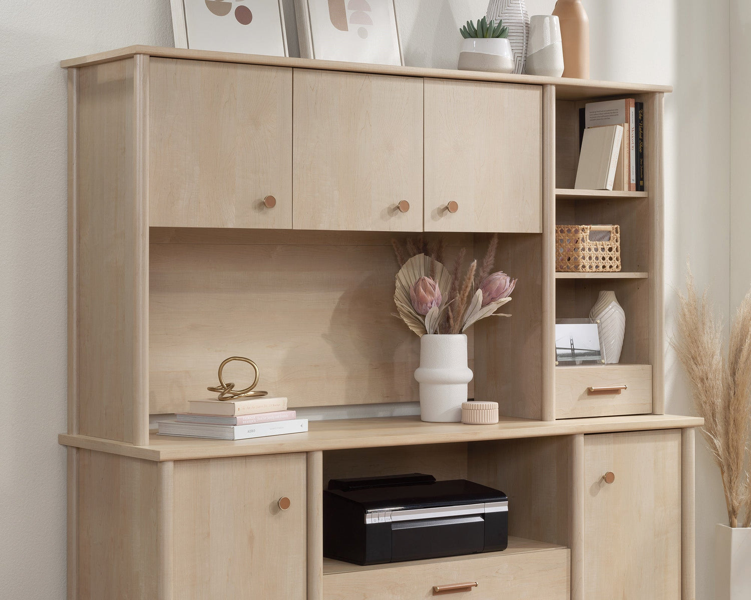 Whitaker Point 66" Large Hutch in Natural Maple – Office Storage Hutch with Adjustable Shelves, Hidden Doors, Drawer & Cord Management
