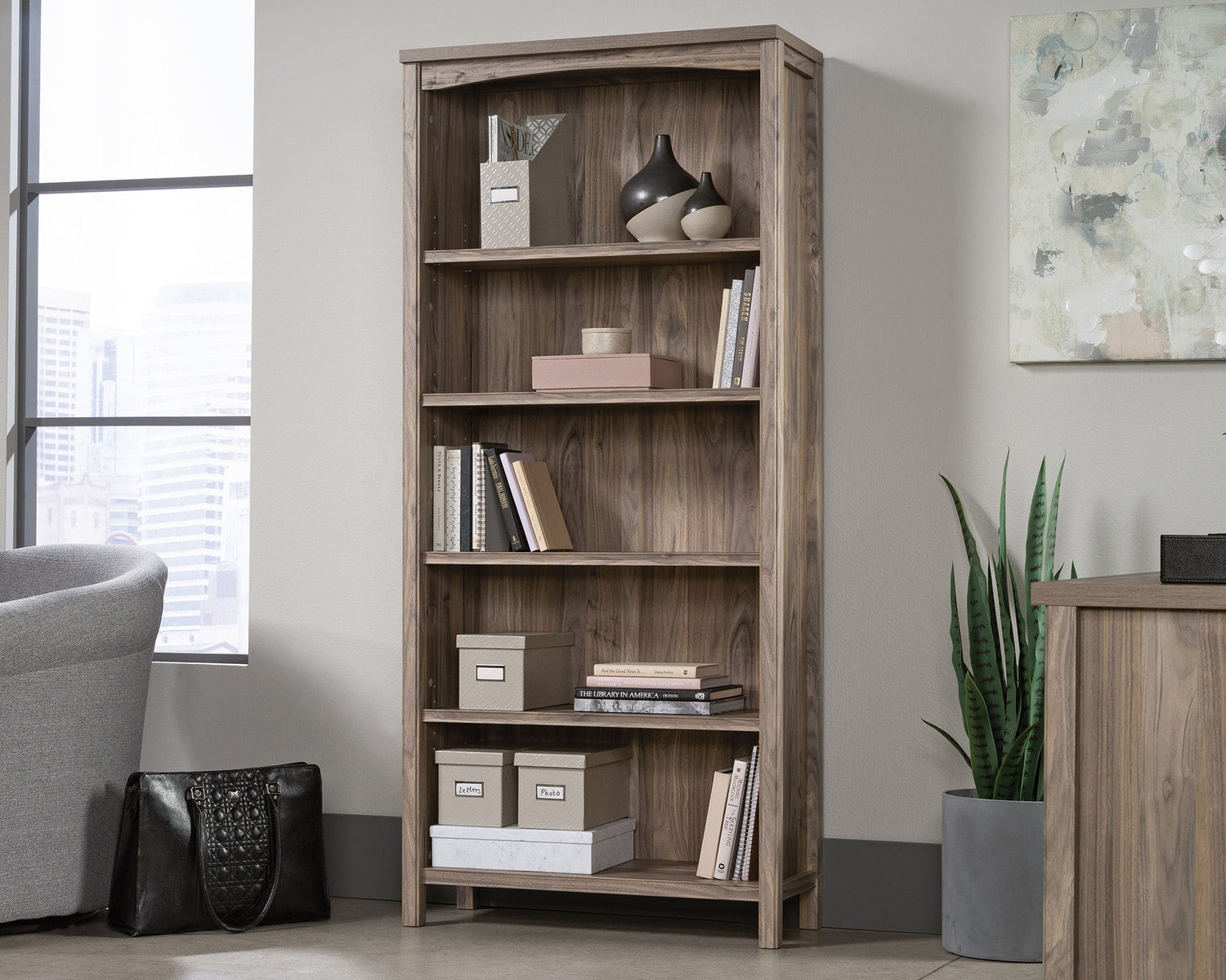 The Woodburn 5-Shelf Bookcase from the Sauder Select collection combines storage and style in one functional piece. Featuring three adjustable shelves and two fixed shelves, it offers flexibility to organize books, décor, or everyday essentials. The Washed Walnut™ finish complements both traditional and modern interiors, making it a practical and stylish storage solution for any room in your home.