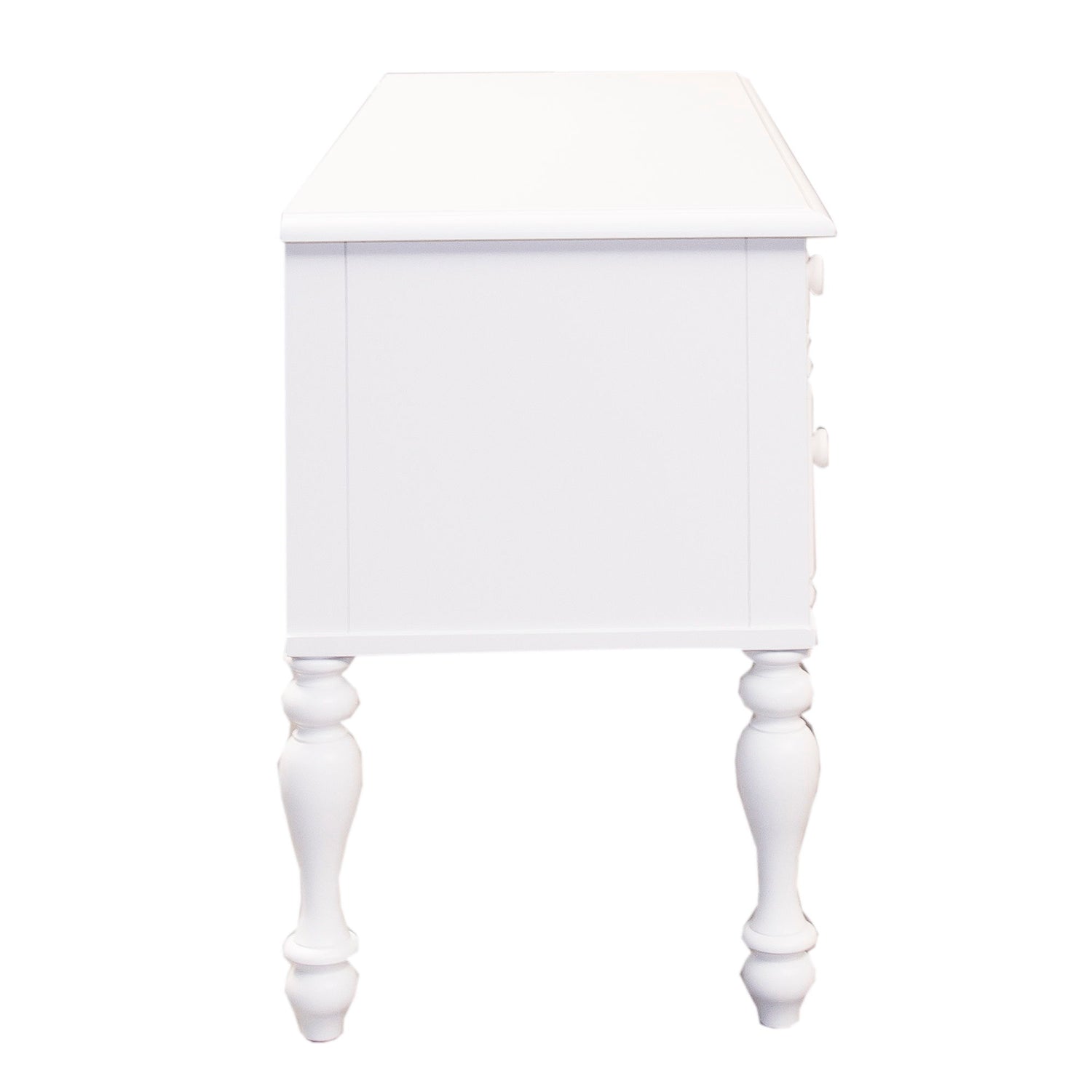 Obtain a fashionable cottage look with the Summer House vanity. The oyster white finish is accented by louvered panels and wooden knob hardware. This piece also features a felt lined top drawer and fully stained interior drawers, perfect for storing makeup and everyday items.