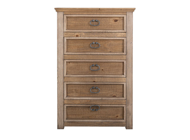 5 Drawer Chest. Indulge in the cozy charm of the Montana Collection, where timeless design meets exceptional craftsmanship. Meticulously crafted from solid pine wood and finished in a warm tone, this collection embodies rustic elegance in every detail.