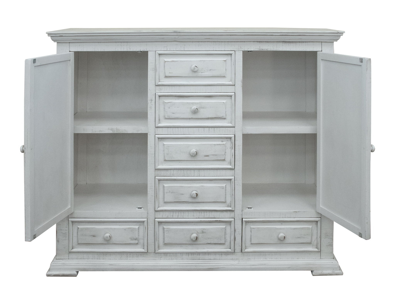 7 Drawer 2 Doors Mule Chest. Drawing inspiration from transitional design, the Terra Gray collection embodies the effortless elegance of its clean, sturdy shapes and the charming rustic grain of solid pine wood. With a tasteful finish, this collection represents a harmonious fusion of modern and traditional elements, making it a timeless addition to your home.