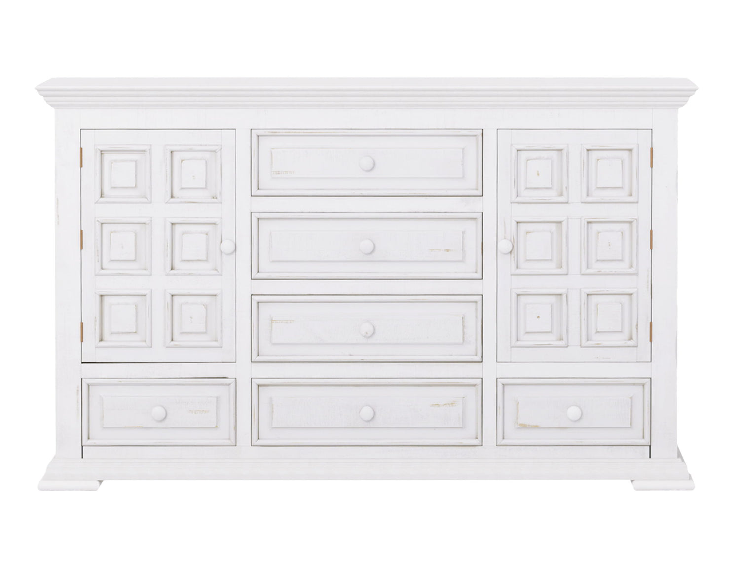 6 Drawer 2 Doors Dresser. Drawing inspiration from transitional design, the Terra collection embodies the effortless elegance of its clean, sturdy shapes and the charming rustic grain of solid pine wood. With a tasteful deep finish, this collection represents a harmonious fusion of modern and traditional elements, making it a timeless addition to your home.