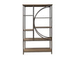 7 Shelves Bookcase. The Zandria collection draws inspiration from post-modern design, skillfully crafted with solid pine wood for tops and shelves. Its exquisite beauty is enhanced by a meticulously hand-wrought metal base with semicircle figures, presenting a sleek and contemporary aesthetic.