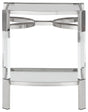 If you love the idea of total transparency, this accent table is surely a sight for sore eyes. Crafted of clear acrylic, the glass top and open glass shelf is beautifully on trend. Sleek chrome plated metal legs with clear acrylic accents add a touch of elegance to your mid-mod vibe.