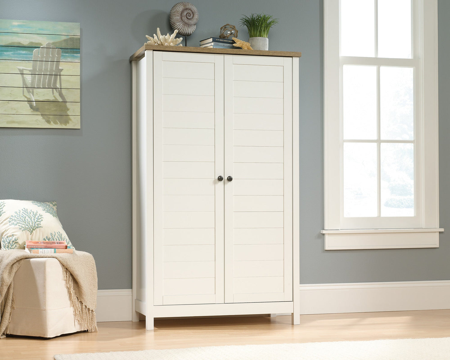 Add rustic charm to your home with the Cottage Road Storage Cabinet. Featuring two large framed panel doors with slatted inserts, this cabinet brings a cottage-inspired aesthetic that complements any room, from the living room to the office or bedroom.