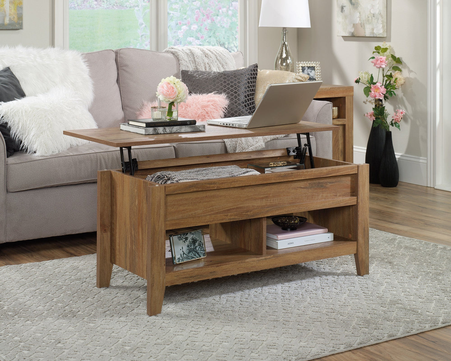 Dakota Pass Lift Top Coffee Table SM in Sindoori Mango – Pop-Up Table with Hidden Storage, Open Shelf, and Versatile Living Room Design