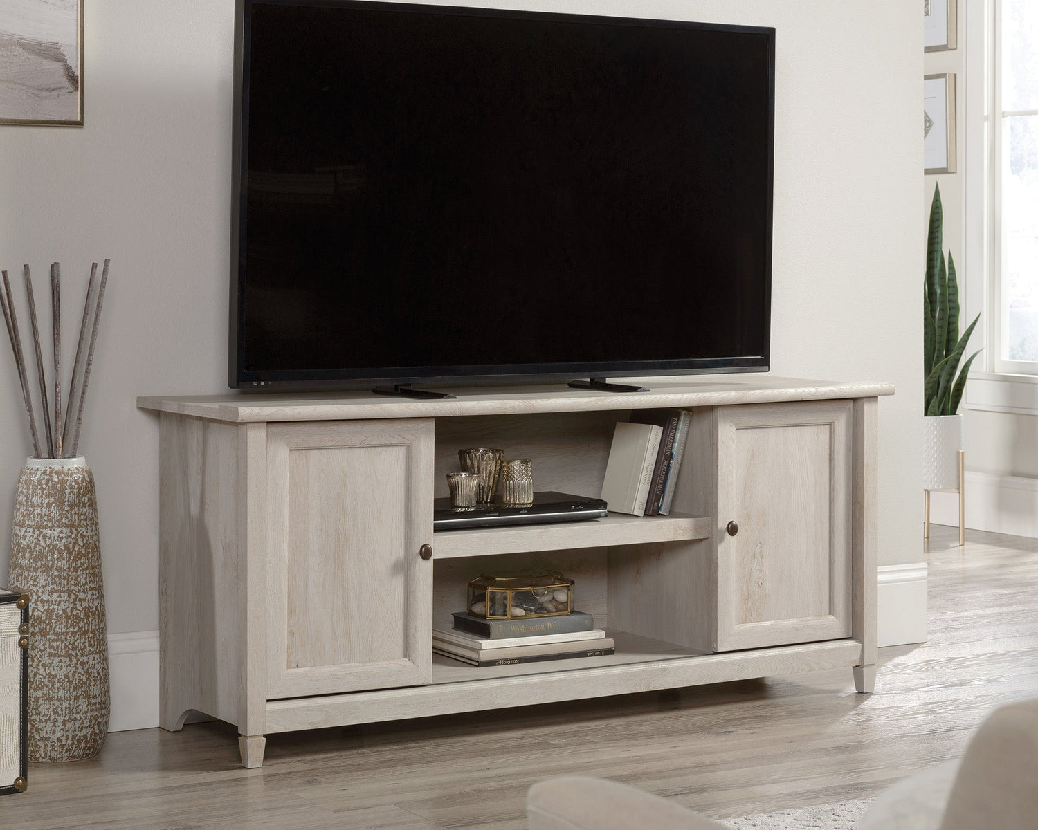 Finished in Chalked Chestnut with an enclosed back panel for cord management, this TV stand combines functionality, versatility, and traditional charm. Its adjustable shelves, sliding doors, and cable-friendly design make it a practical and stylish addition to any living room, den, or entertainment space.