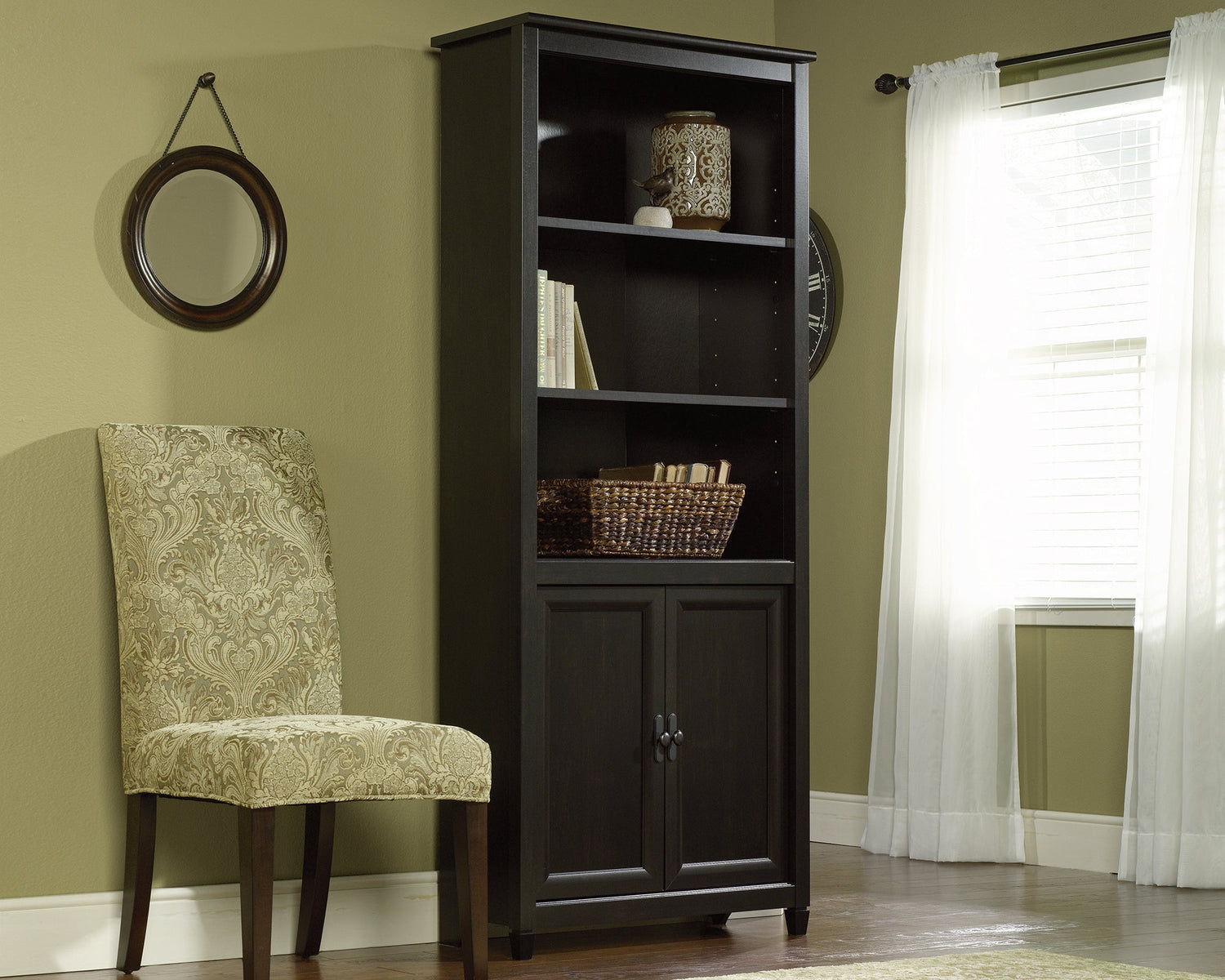 Edge Water Library with Doors ESB in Estate Black – Adjustable Shelves Bookcase with Hidden Storage and Elegant Transitional Design