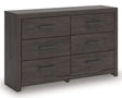 Designed with everyday style in mind, this dresser is a simply chic approach to modern living. A dark charcoal finish blends black and brown undertones, creating a versatile look that effortlessly pairs with your existing pieces. And for must-have function, six smooth-gliding drawers store clothes and linens in charming fashion.