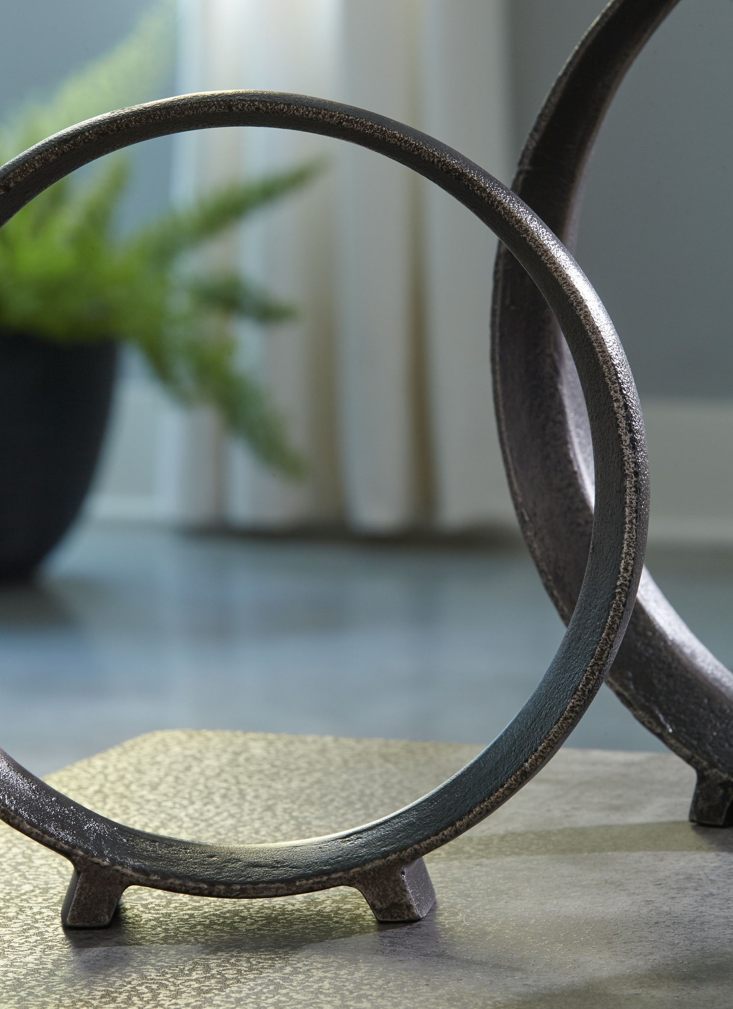 A modern take on classic geometric design, this sculpture rounds out your decor in sleek style. The finish has an edgy appeal that remains versatile, suiting spaces from contemporary to casual.