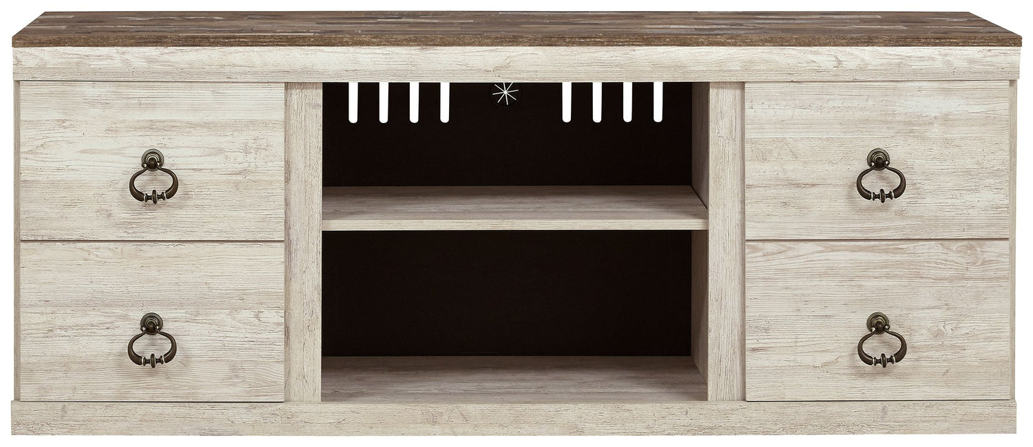Willowton - 64" TV Stand W/Fireplace Option - Whitewash
