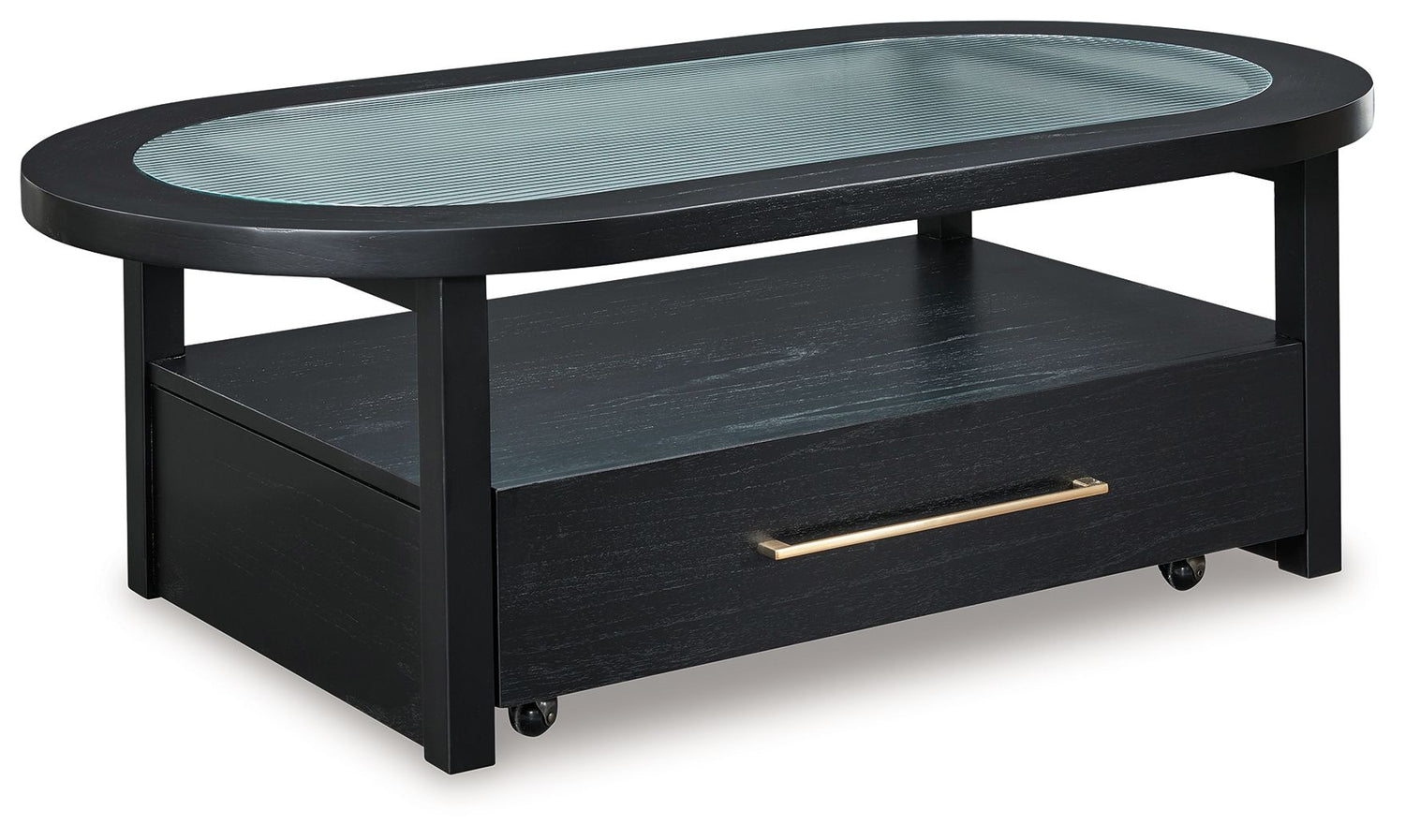 If you are a lover of simplicity, the Winbardi coffee table is the perfect choice. Its black finish, casual contemporary design and spacious storage capacity provide functional style wherever it’s displayed. And with casters for easy mobility, it's easy to change up your furniture layout when you have a burst of creativity.